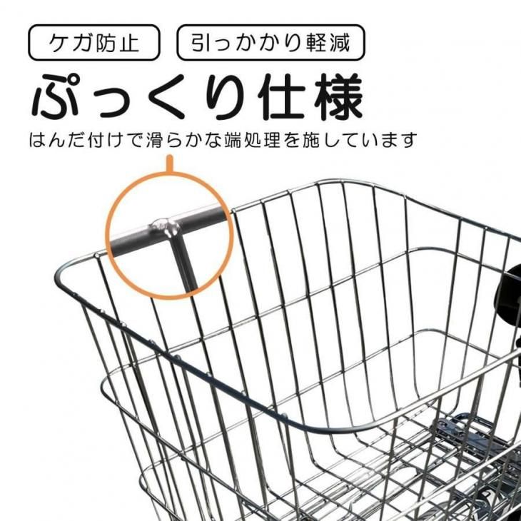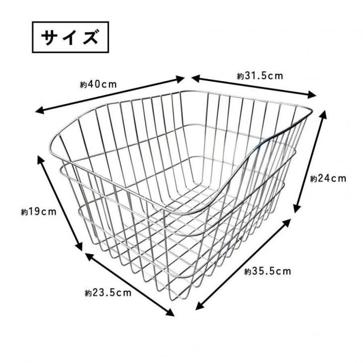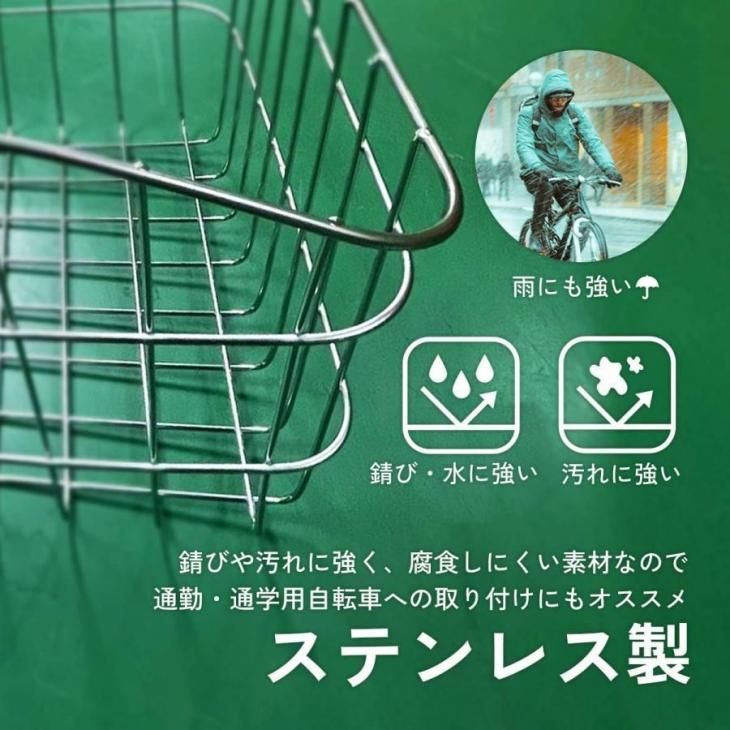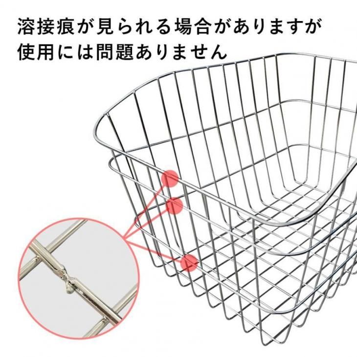 カゴ本体は、錆びや汚れに強いステンレス製。腐食しにくい素材のため、長くご使用いただけます。