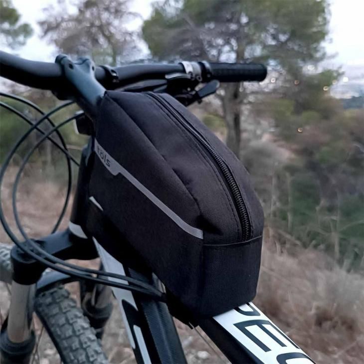 サイクリング中に必要なアイテムを素早く取り出せる、理想的なトップチューブバッグ。