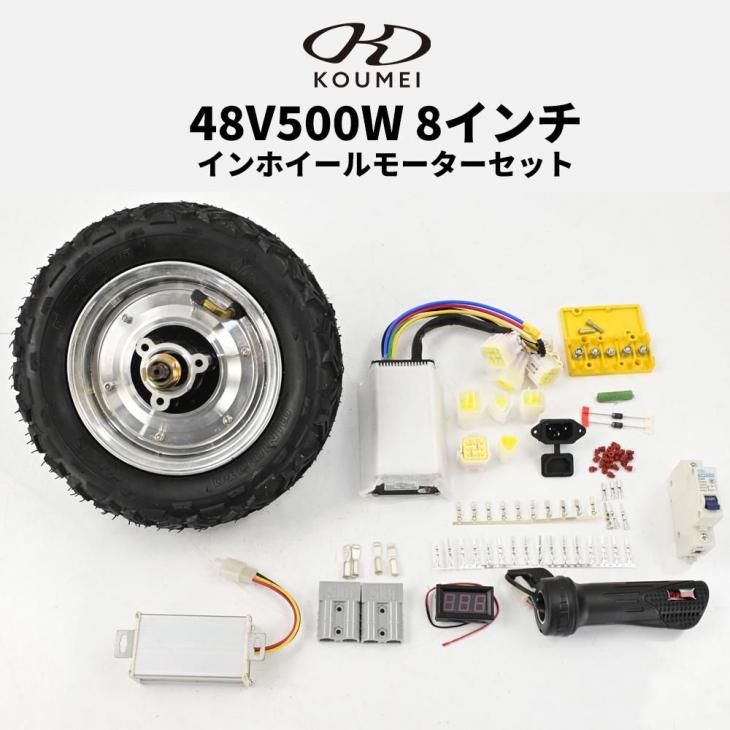 EV 電動化 8インチ インホイールモーター ハブモーター セット 48V 500W 50cc 原動機付自転車 原付 動力 コンバート DCDC